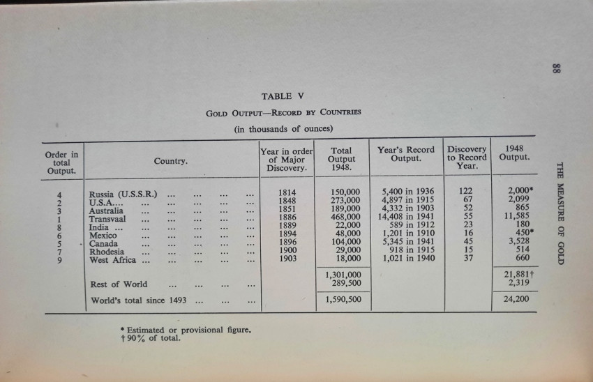 IV. World Gold Production (1929-1949);