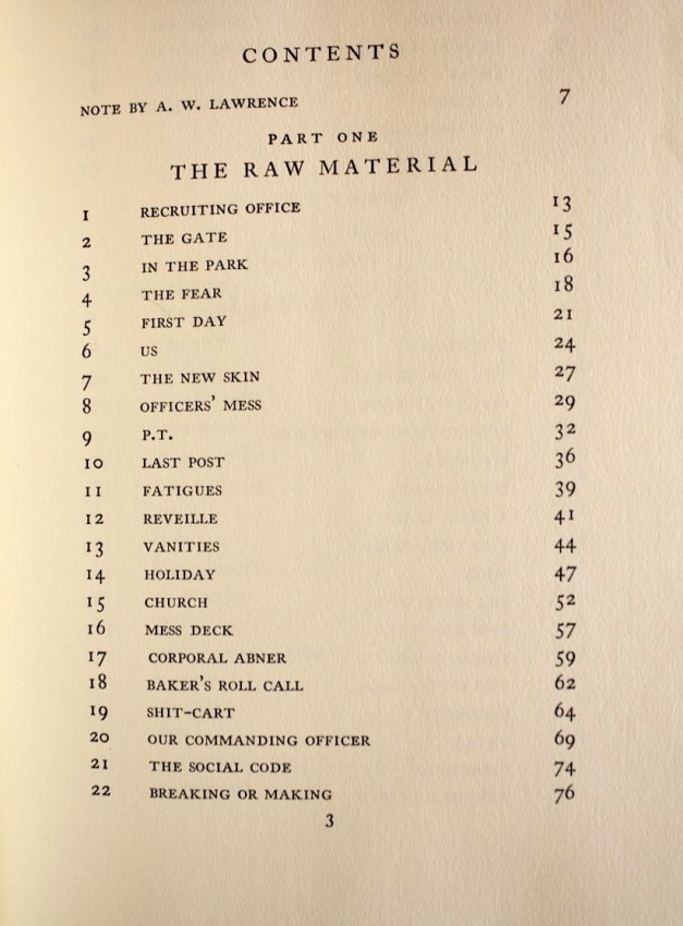 Lawrence's memoirs as an enlisted man in the R.A.F., which remained unpublished until after his death due to the people mentioned in the work.