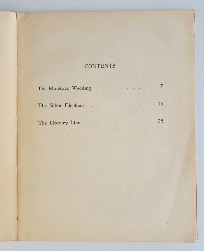 Contents include The Monkeys’ Wedding, The White Elephant and The Literary Lion.