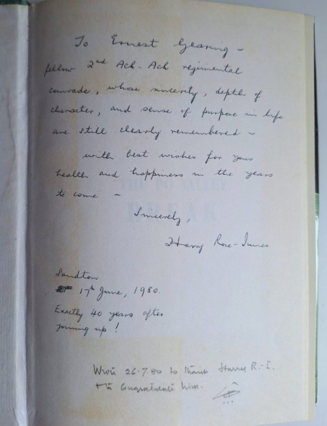 Signed and inscribed by the author to previous owner, Ernest Gearing who has also signed the book. Gearing was also a member of 2nd Ack Ack which is an abbreviation of the 2nd Anti-Aircraft Brigade.
