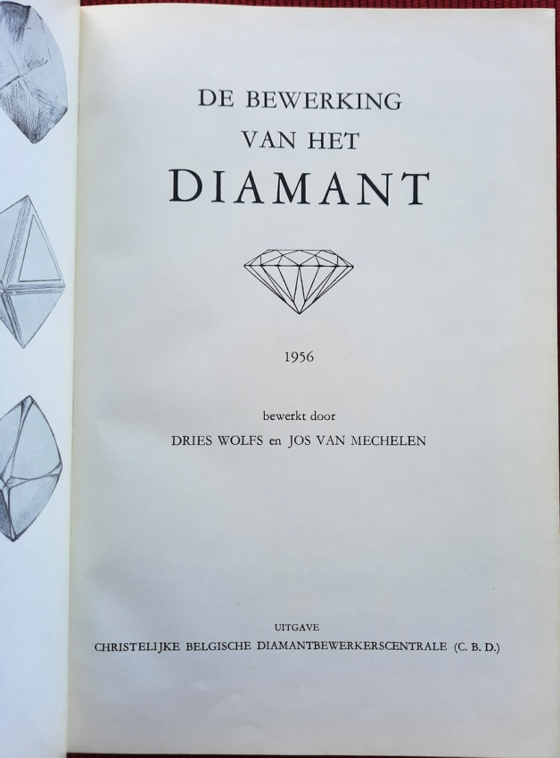 "It is a great honor for me to write the foreword to this professional book and to place my name alongside the names of two eminent members of our organization (Christelijke Belgische Diamantbewerkerscentrale, or C.B.D.): Mr. Dries Wolfs, former professor at our vocational and training schools, and Mr. Jos Van Mechelen, a former student and currently a director of this school. Both are also "Laureates of Labor" and highly skilled craftsmen who have earned their stripes in vocational education and continue to dedicate their best efforts to elevating the diamond trade to the highest possible level.