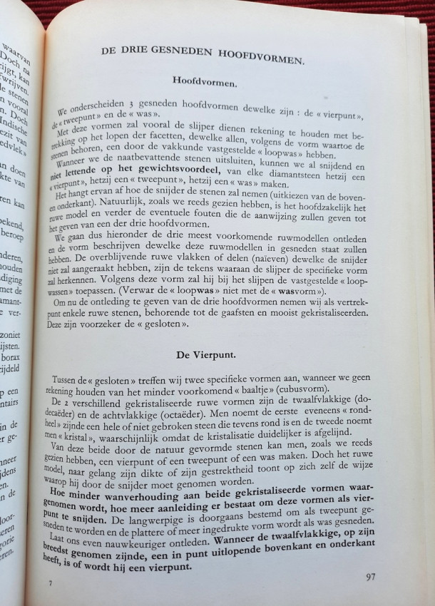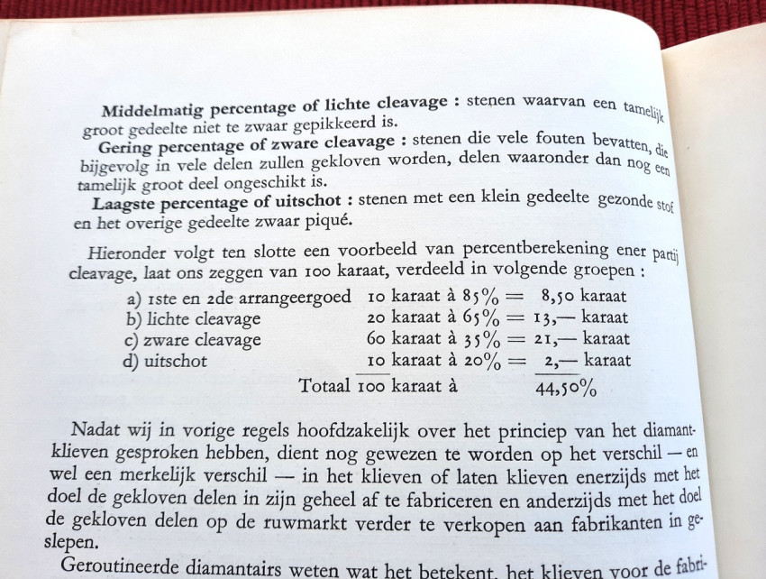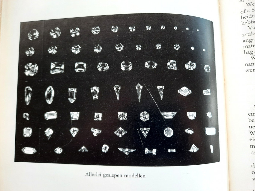 Determining the raw material, the properties of the diamond, its brilliance and light reflection, color dispersion, hardness, value, etc., were all already described in a series of articles. In 1950, under the care of the C.B.D., along with a series of articles on "inspecting," sorting rough, and grading polished diamonds, these articles were compiled and published in a beautiful book, illustrated with numerous interesting photographs, under the title: "The Diamond Industry in its Components."