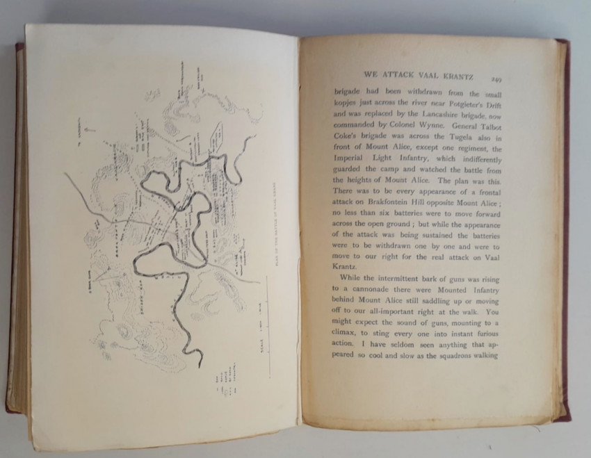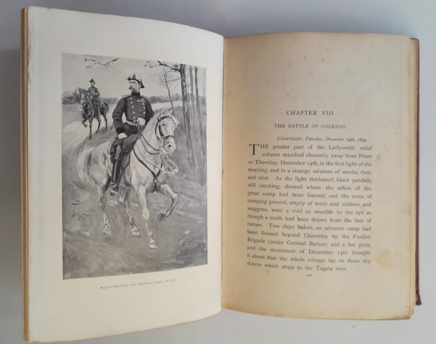 'A reproduction of letters published in the Manchester Guardian, together with an Introduction giving a concise account of the early stages of the campaign in Natal, and many plans and illustrations. There are detailed descriptions, including the battles of Willow Grange, Colenso, Railway Hill, Pieter's Hill, and of the successive attempts to relieve the beleaguered town. The writer was evidently a great admirer of General Buller, and remarks that "he gained laurels from his defeat that are not always won by victorious generals. He sacrificed, or let me say rather, he jeopardised, his own reputation in order to avert an irreparable sacrifice of his army."' Mendelssohn