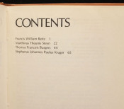 Includes the biographies of Francis William Reitz, Marthinus Theunis Steyn, Thomas Francois Burgers, Stephanus Johannes Paulus Kruger.