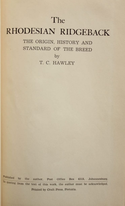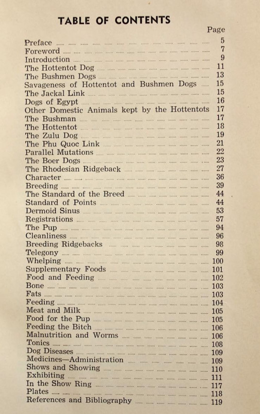 In his preface, Col. Eugene O. C. Maggs, vice-president of the Rhodesian Ridgeback Club, describes the author as a skilful and sporting handler of the breed and a breeder of superb animals.