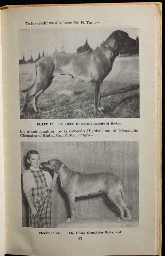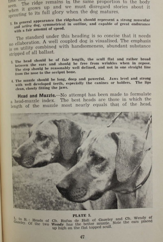 The book is liberally illustrated with photographs of different outstanding specimens of the modern ridgeback.