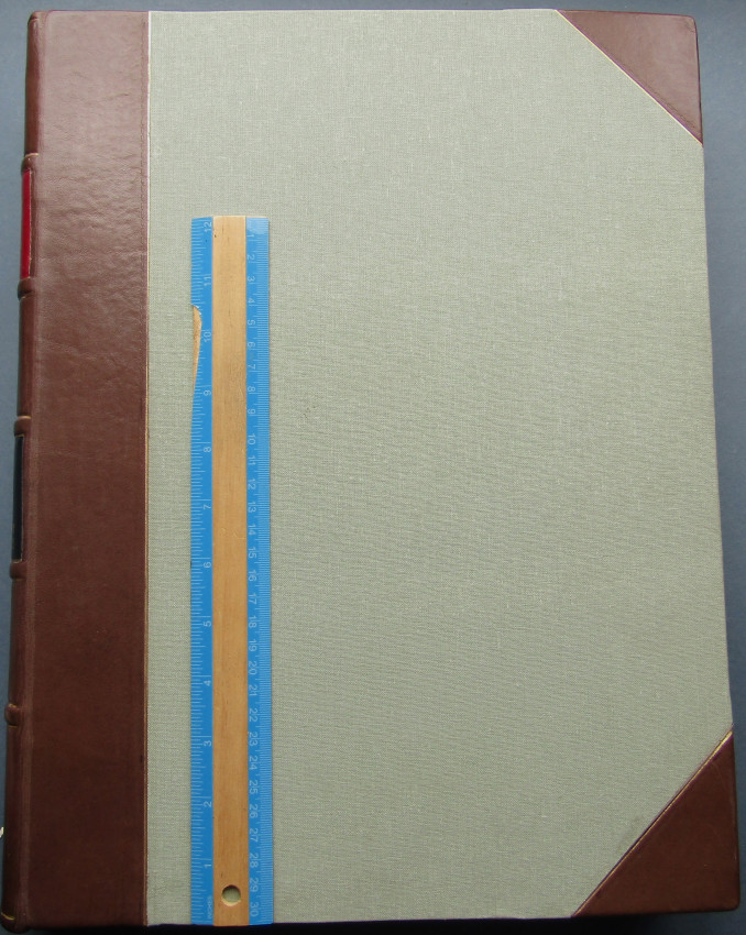 Half-leather over green cloth.