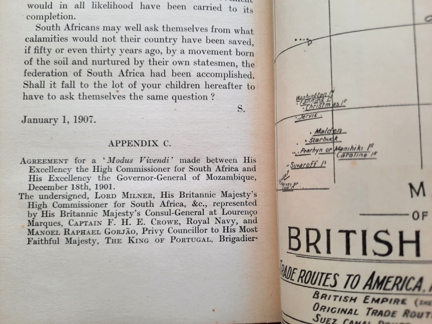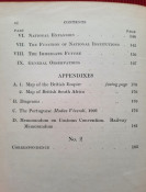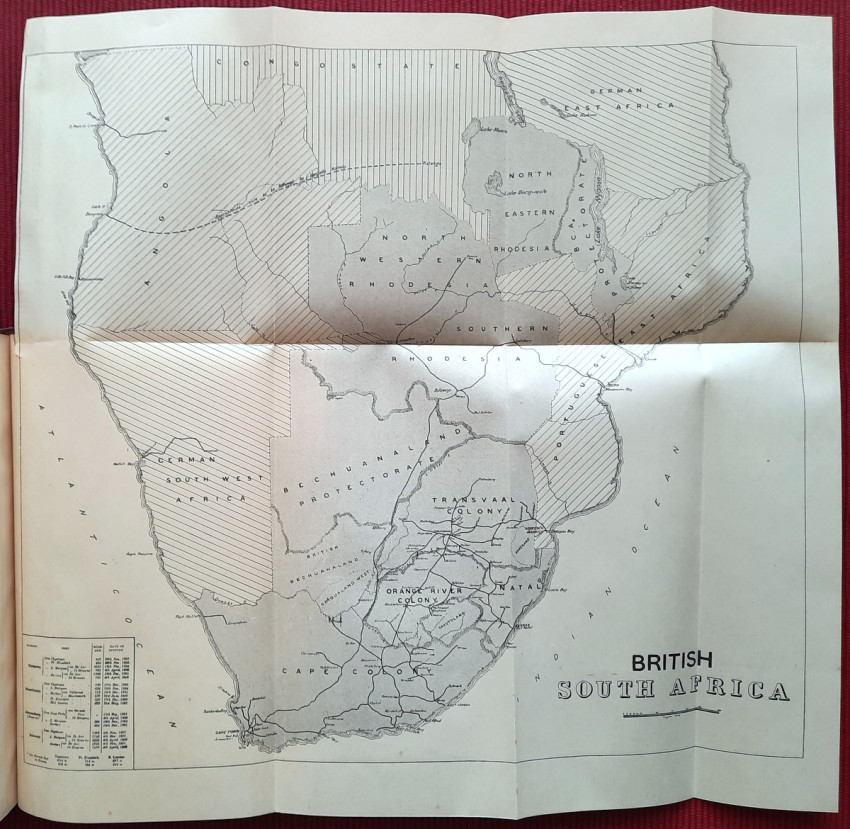 With a two multiple folding maps (Map of the British Empire with Trade Routes to the America, Australia and the East; and Map of British South Africa) and three folding diagrams.
