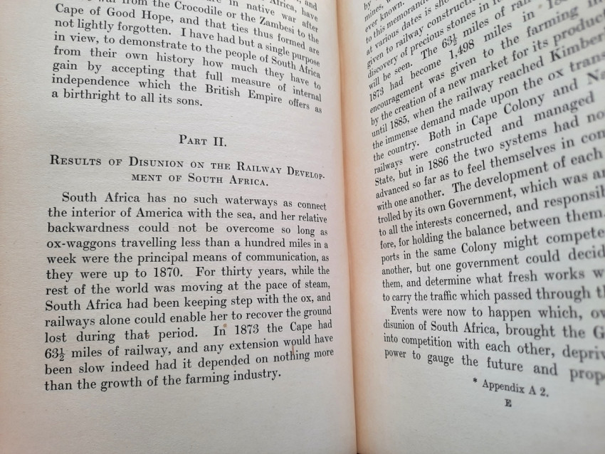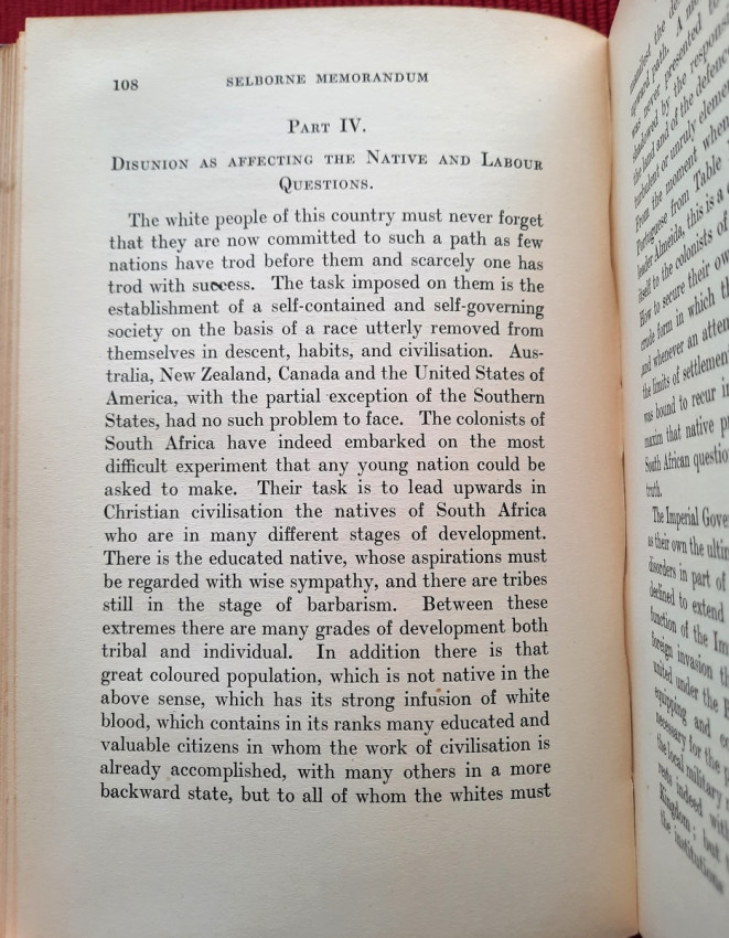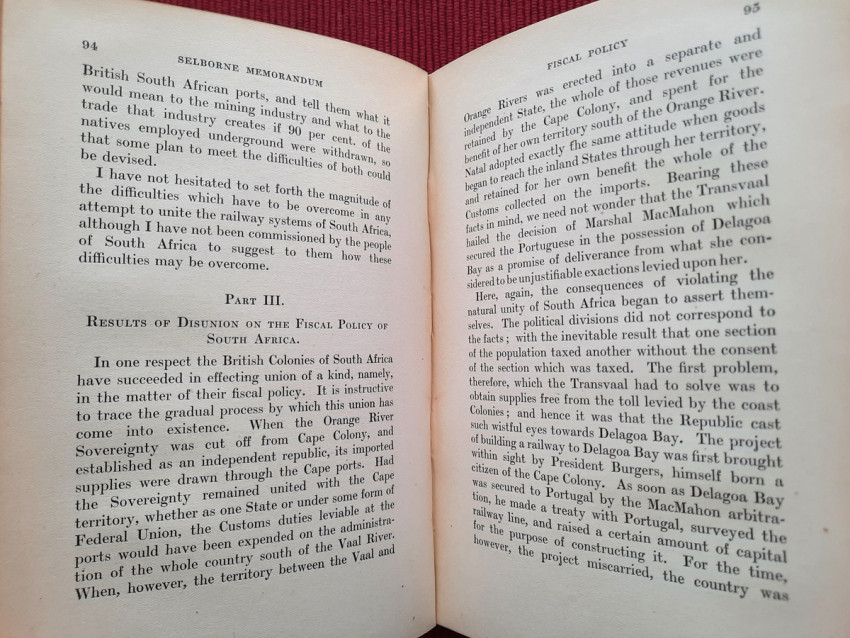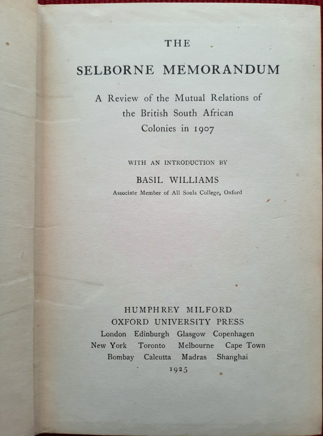 "The Selborne Memorandum" (officially titled "A Review of the Present Mutual Relations of the British South African Colonies" and published in 1907 by the Colonial Office), is a pivotal document authored primarily by Lionel Curtis under Lord Selborne, the British High Commissioner for South Africa. It argued that the separate British South African colonies were economically and politically interdependent, advocating for closer union or unification to resolve issues like railway disputes and economic instability. It's purpose was to make a historical and practical case for the unification of the British South African colonies (Cape Colony, Natal, Transvaal, and Orange River Colony) with an explanation that individual colonies could not effectively manage common issues like railways, customs, and native policy, stating they were "part of one whole".