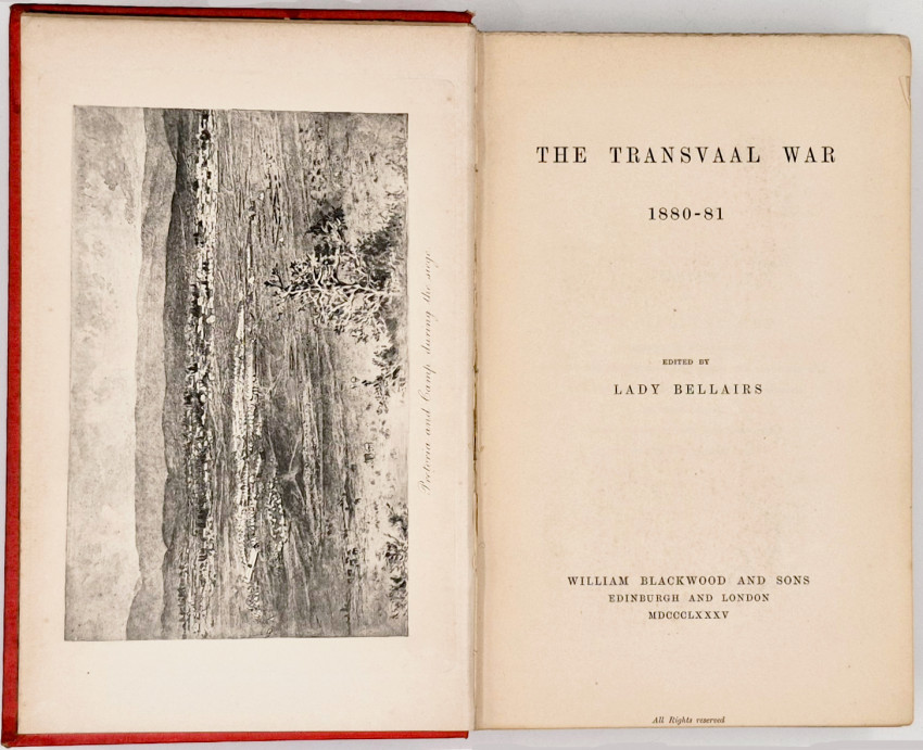 First Edition: 500 and 24 pages of publisher's catalogue, frontispiece, map, red cloth with a vignette of a Boer soldier on the upper cover and gilt titling on the spine, top and bottom of the spine frayed, original black endpapers, a very good copy.