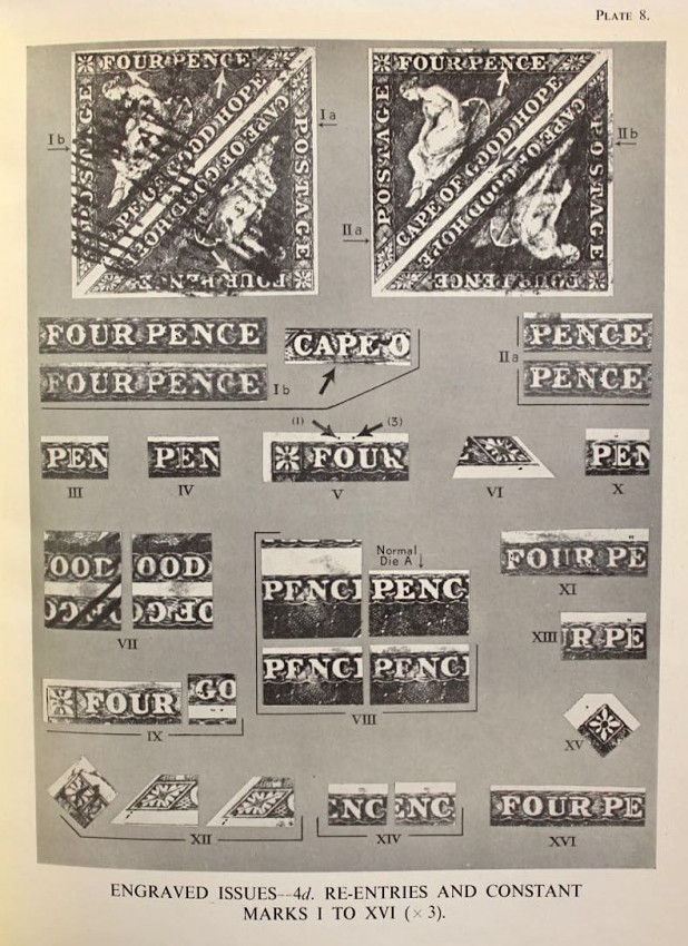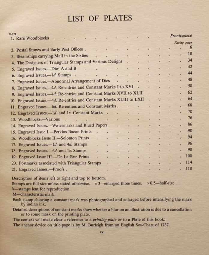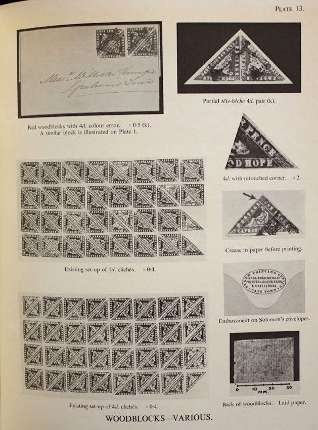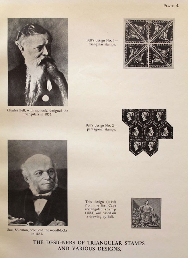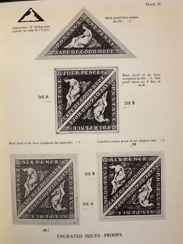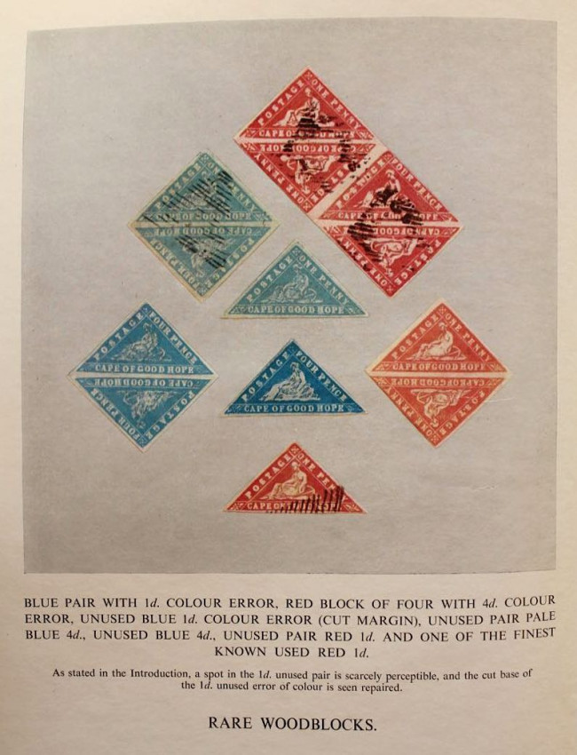 Publisher's black cloth binding with embossed gilt design of the famous Cape triangular stamp on front panel and gilt titles on spine.
