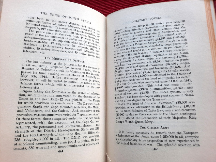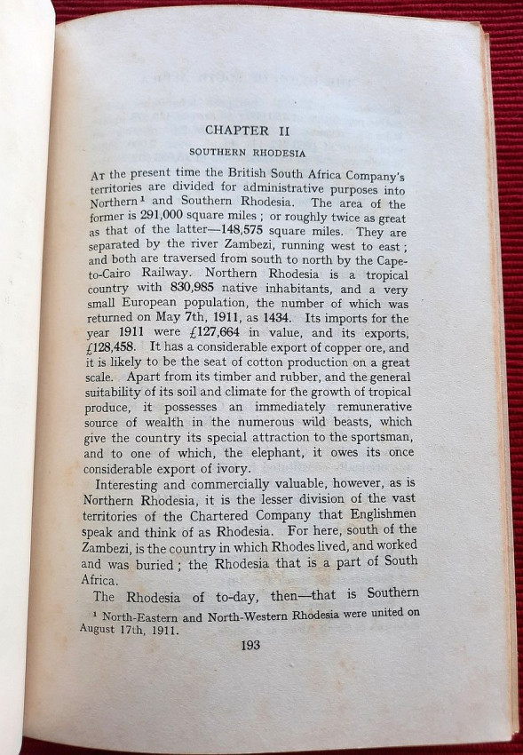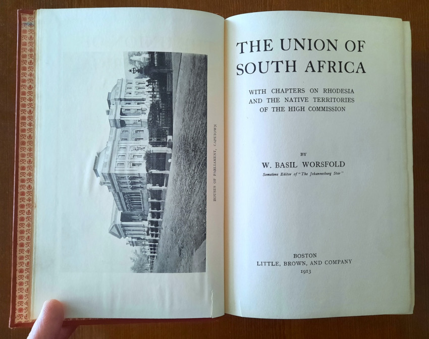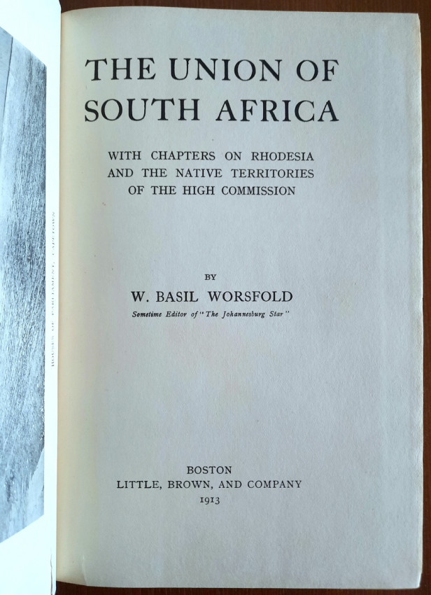 Original publisher's red cloth hardcover; Text in English; Collation complete - Front paste down and front free endpaper with colored map of "The British Empire 1800", Half-title, [1], Frontispiece, Title page, ix, 530 pages, with 23 photographic plates, folding color map of the "Union of South Africa" at the rear, rear free endpaper and rear paste down with colored map of "The British Empire 1900"; Binding is tight and firm, with usual shelf wear, little rubbed and bumped to the extremities (more to the spine extremities). Traces of slight discoloration and a few surface scratches to the boards. Otherwise the binding is strong and secure, joints and hinges are whole and stable. Othervise, the text block/pages in excellent condition, bright and clear, with minor yellowing. Some age tanning to the page edges. No any markings or underlings, no brown foxing. A sound copy of this extremely rare title in any edition.
