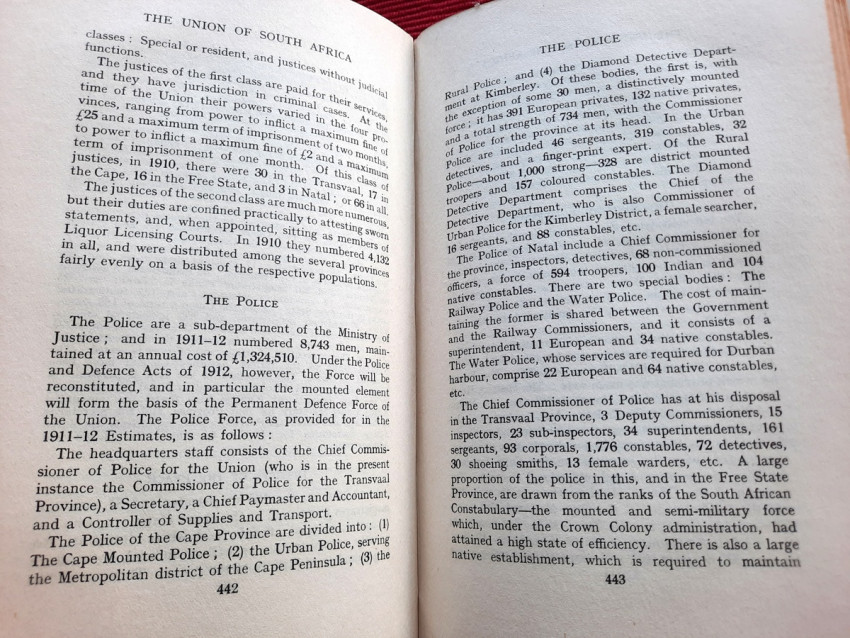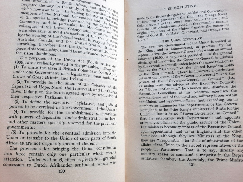 Part II - "The Governement" (with chapters: The Union Constitution; The Provincial Administrations; Financial and Administrative Reorganisation; The Supreme Court of South Africa);