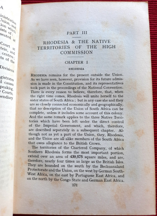 Part III - "Rhodesia and the Native Territories of the High Commission" (with chapters: Rhodesia; Southern Rhodesia; The Native Territories);