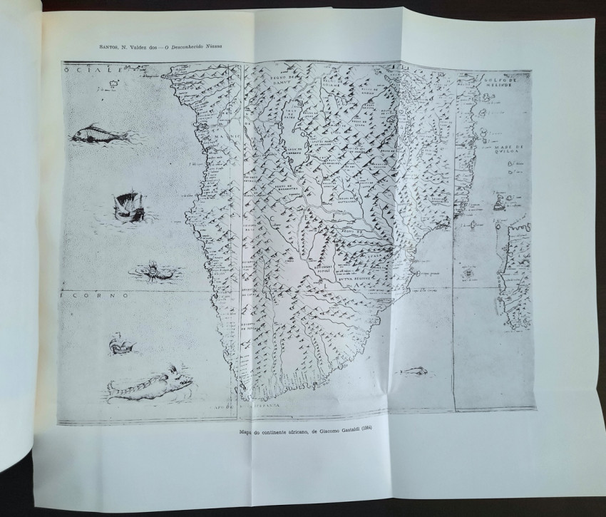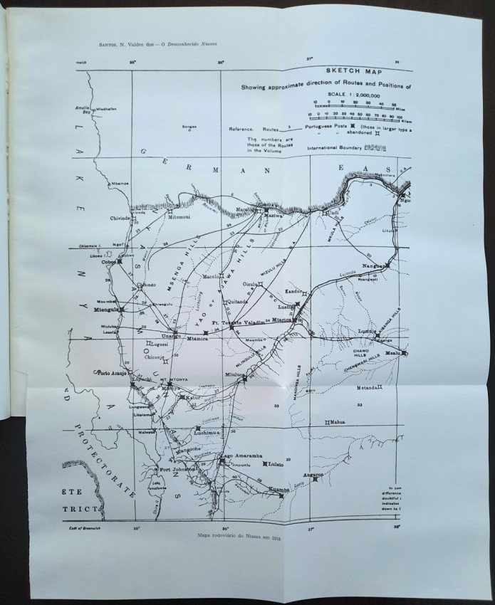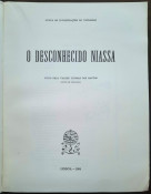 "O Desconhecido Niassa"; Paperback; Text in Portuguese; Collation complete - Title page, 240 pages, with numerous plates and maps (many folding, some coloured); Ex-university library copy, a two withdrawn stamps to the front free endpaper and interior of the front board, ex-libary stamp to the page edges of text block. Paperback binding partly sunned and little discolored, with some bumping, but whole and tight. The volume seems to be never opened, even it is an ex-library copy. Text block/pages are perfectly bright and clear, no any signes of use, no foxing, markings or annotations. Well preserved copy.