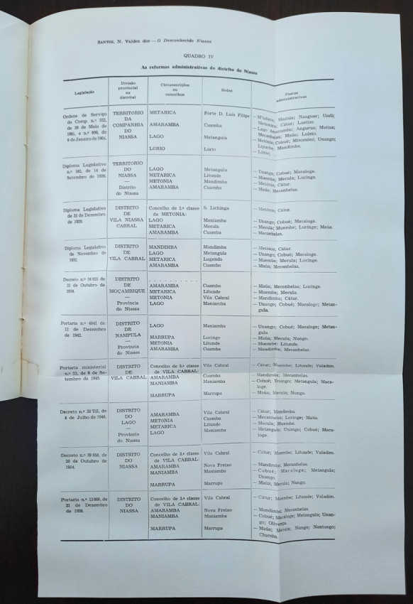 An important monograph covering the study of the history, geography, geology, territory, population (ethnology, ethnography, etc.), nature and natural resources, economy, land borders, mines, settlements, roads and railways, etc. Profusely illustrated with folding photographic reproductions of historical maps of Africa, South Africa and the Niassa region from the 15th century to the date of publication; also with numerous photographic reproductions of old engravings and contemporary photogravures. From the meticulous editions of the "The Overseas Scientific Research Board" (JICU), resulted from the Board of Geographical Missions and Colonial Research.