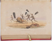 Third edition (the first issue with hand coloured plates): 359 pages, hand coloured lithographic frontispiece, hand coloured vignette title page, folding map, 24 hand coloured lithographic plates, bound in half red morocco with title gilt and decoration on the spine, all edges gilt, marbled end papers. The lithographic frontispiece and title page are foxed caused by the poor quality paper used for the tissue guard, the plates are toned but free of foxing, the contents pages are bright, a very good copy.