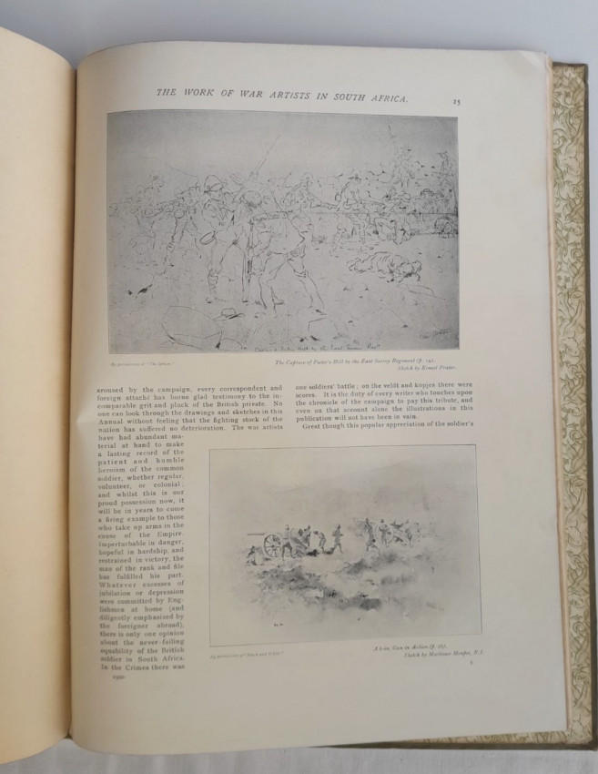 With illustrations from drawings by artists of the time including William Barnes Wollen, who was commissioned by the new illustrated weekly newspaper, “The Sphere” to act as one of its special artists in South Africa to cover the Boer War.
