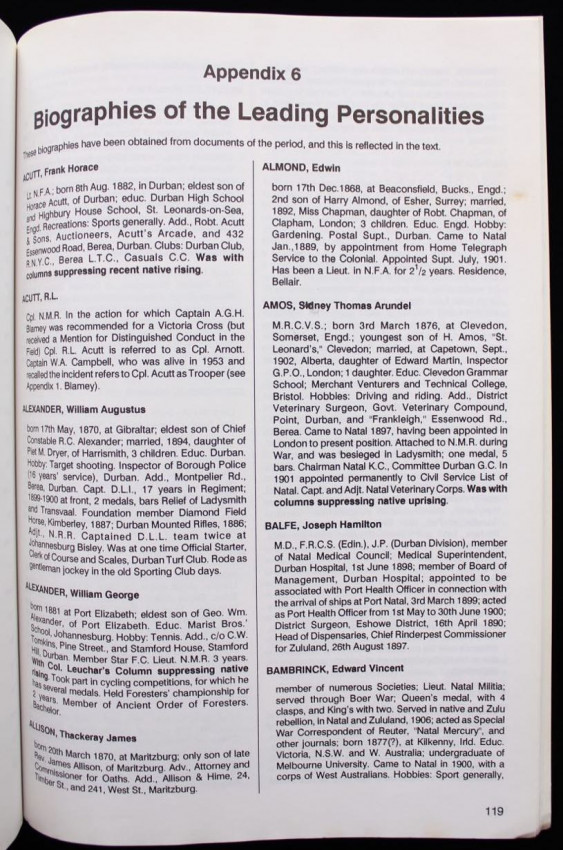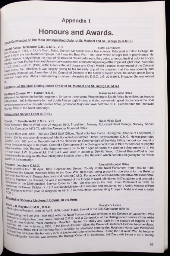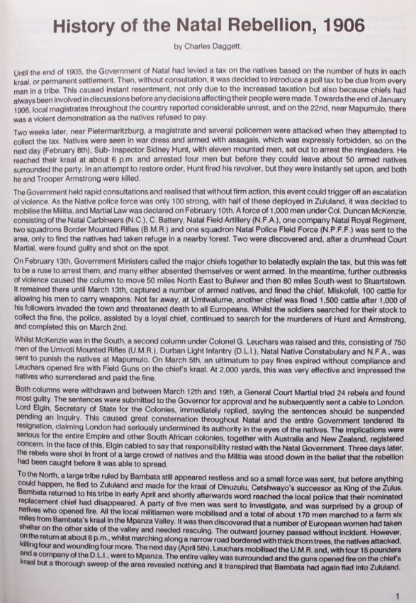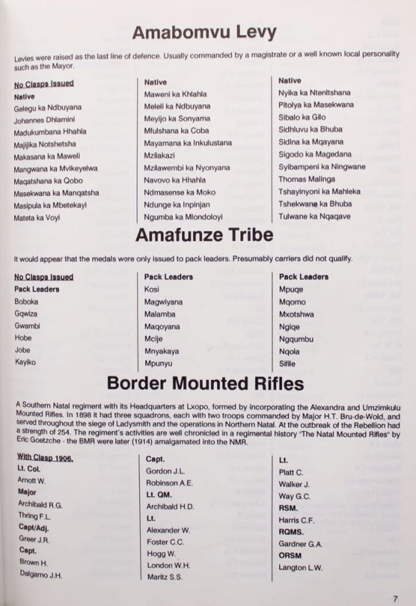 'In his introduction to the original Medal Roll for the Zulu Rebellion, published in 1976, Dr. F.K. Mitchell touched upon the modern trend by the collector of wanting to know more about the man behind the medal and the history of the campaign. He was complimentary in his comments on the efforts made by Donald R. Forsyth in this respect. The author, as Dr. Mitchell pointed out was generous in sharing his knowledge with others.