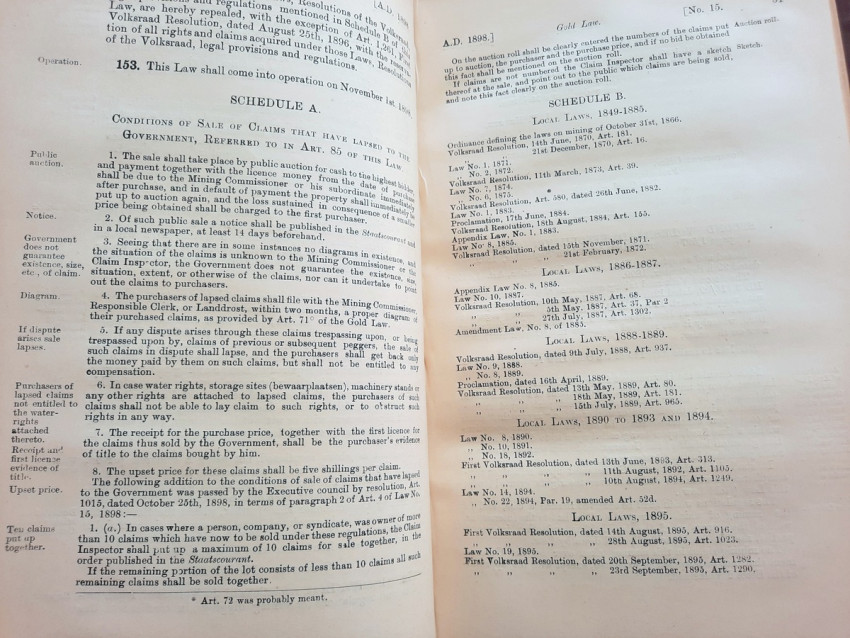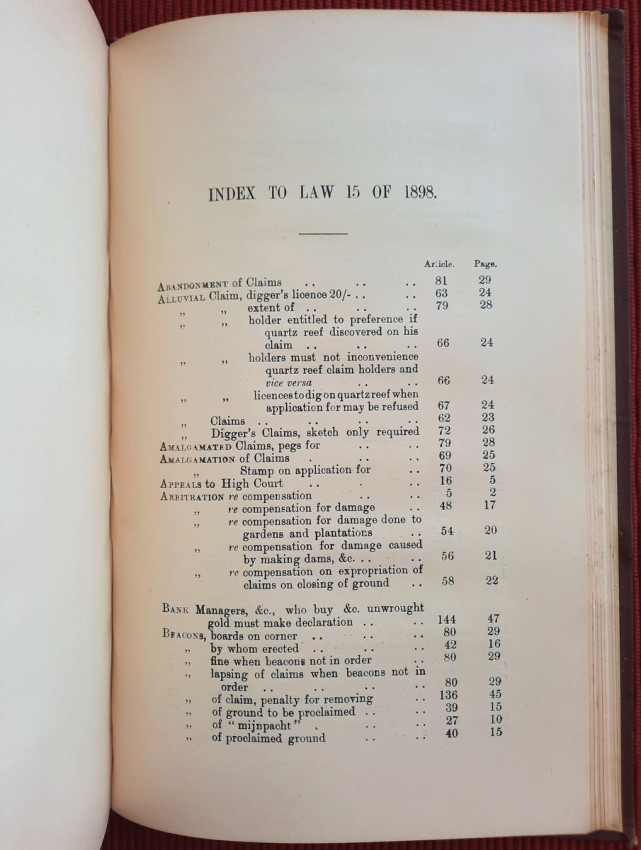 Separate indexes are also provided, as well as a table showing the corresponding articles of the Gold Laws of 1894, 1895, 1896 and 1898."