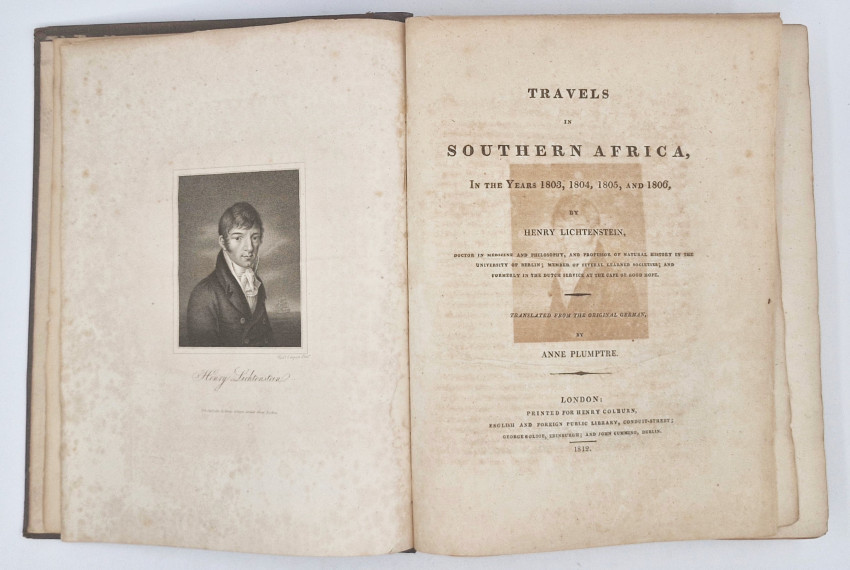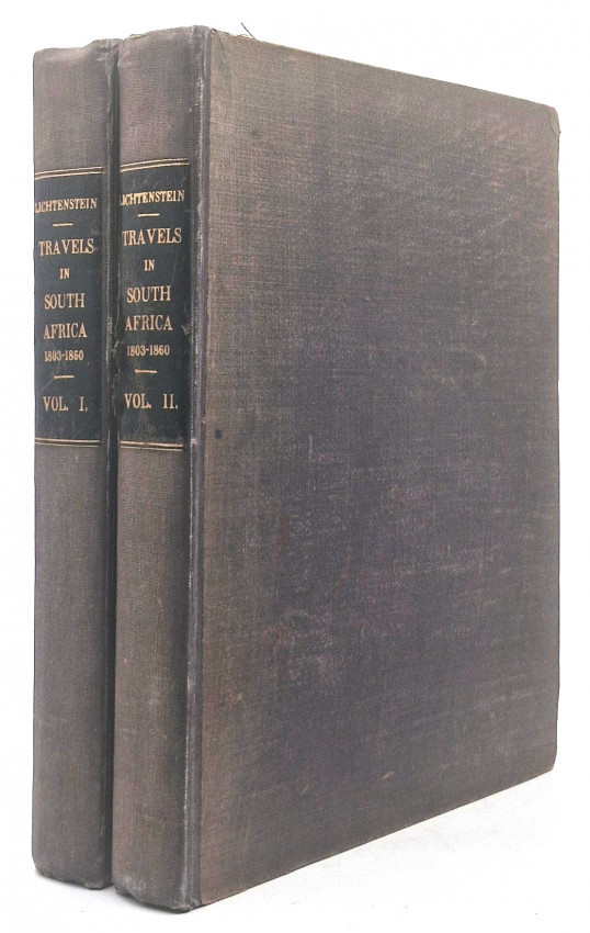 Mendelssohn (S.) South African Bibliography, volume 1, page 899. ‘Dr Lichtenstein was tutor to the son of Governor Janssens of the Cape Colony. The author offers a criticism of Barrow in his references to earlier travellers, accusing him of being 'totally unacquainted with the general habits and mode of life of the colonists...' Lichtenstein travelled with the Governor through the interior. Bushmen and Bechuanas are described and the information about the wild life and their natural surroundings is recorded in detail.’