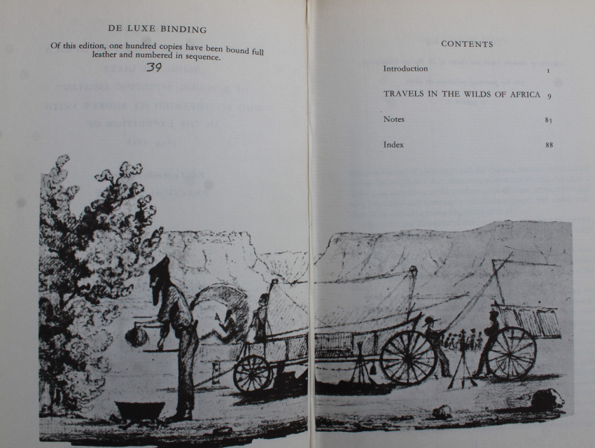 John Burrow was a youth of eighteen who made a straightforward, concise description of his journey as a member of Dr Andrew Smith’s exploratory party to the northern areas of South Africa. Pencil sketches are illuminating and charming and contribute to the atmoshere and enjoyment of the book.
