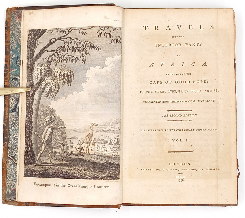An account of the second expedition, Second voyage dans l'interieur de l'Afrique, par le Cap de Bonne-Esperance, dans les annees 1783, 84 et 85 (Paris, 1795, 3 volumes) proved equally popular. English translations, titled Travels into the interior parts of Africa... and New travels into the interior parts of Africa... were first published in 1790 and 1796 respectively. The books were also translated into German, Dutch, Italian, Swedish and Danish, and did much to draw international attention to the Cape. S2A3 Biographical Database of Southern African Science (https://www.s2a3.org.za/bio/Biograph_final.php?serial=1672)