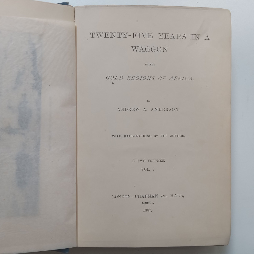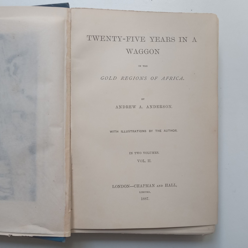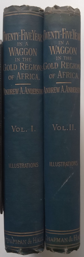 Information about Anderson is confined mainly to what can be gleaned from his writings. In 1884 he published an article titled "Notes on the geography of South Central Africa, in explanation of a new map of the region..." in the Proceedings of the Royal Geographic Society in which he describes the territories covered in his travels. The map published with this account was entitled "The interior of South Africa from latitude 15º to 30º, explored and surveyed by A.A. Anderson". He is described in the paper's title as a civil engineer, probably in recognition of the survey work on which his map was based. The Western portion of the map was soon reissued by Saul Solomon and Co. of Cape Town, while his article and map were also published in The South African Illustrated News in September 1884. Anderson's best known work is his book, Twenty Five Years In A Wagon In The Gold Regions Of Africa, published in two volumes in London in 1887, with a revised edition in one volume under a slightly different title the next year. It contains not only geographical descriptions, but also traveller’s tales and reminiscences. Although not a good artist he made many sketches, on which he wrote long explanatory notes. Some of these illustrate his books and many are now in the Africana Museum, Johannesburg. (https://www.s2a3.org.za/bio/Biograph_final.php?serial=56)