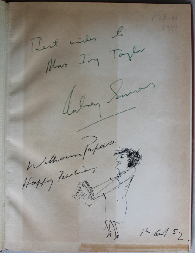 Redbrown cloth covers with the title to the spine, pictorial dust jacket, 72 pages. Signed by both authors on the ffep, with a sketch added by Papas. Dated 7th Oct 52. A copy in very good condition.