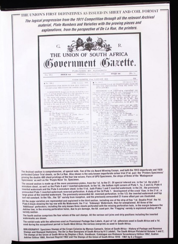 'The Union of South Africa's First Definitives as issued in Sheet and Coil Format.'