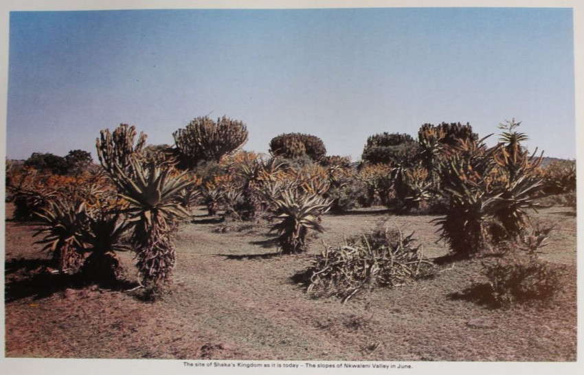 The northern side of the Nkwaleni Valley is dominated by the Nkwenkwe mountain in which, legend has it, resides "UMNINGI", the six-headed serpent. On the southern side overlooking the Valley are the sites of two great military kraals. The first, and by far the best known is King Shaka's KWABULAWAYO after which Bulawayo in Rhodesia is named. The second is ONDINI which was Cetshwayo's royal kraal during the reign of King Mpande when Cetshwayo rightly considered himself to be the crown prince - later, when he became King he moved to ULUNDI on the northern banks of the White Umfolozi.'