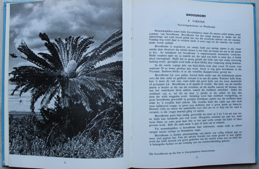 Text both English and Afrikaans. Some chapters on: commiphora, dioscorea sylvatica, cycads / broodboom, scirpus rubicundus, welwitschia, seaweeds, combretaceae.