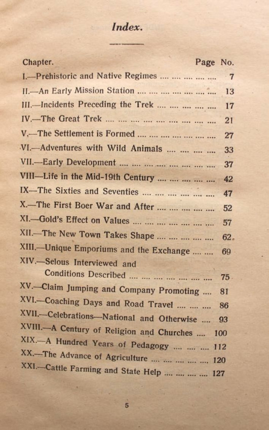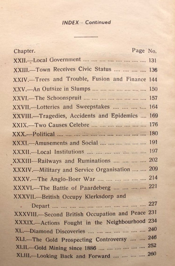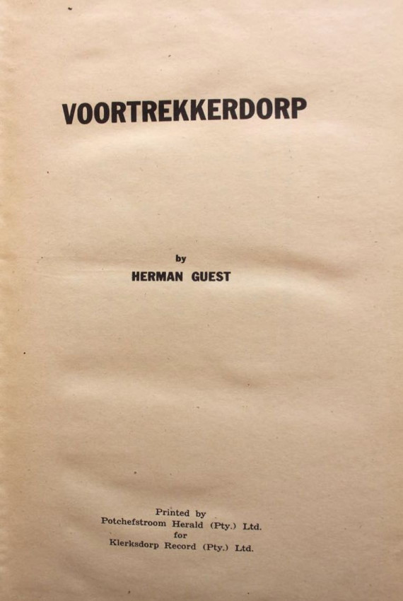 The history of one of the oldest Transvaal towns, located in the old Western Transvaal (now North-West Province). The author was the editor of the local paper - the Klerksdorp Record. He was also the son of the famous Klerksdorp printer and publisher Herbert Melville Guest, who wrote and published a series of books about the Boer War during, and in very close proximity of, the conflicts. Like his father he was also a mayor of Klerksdorp and held office from 1923-26.
