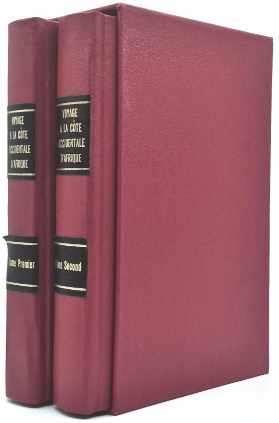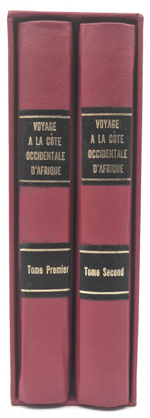 First Edition: 2 volumes. 1. (vi), 226. II. (vi), 320 pages, large engraved folding plan of the Cape, folding plan of the Castle of Good Hope, 1 folding map, 8 folding plates, simply bound in red cloth with black title labels on the spines and contained in a matching cloth slip case, what appear to be the original paper wrappers bound into each volume, uncut edges giving full margins, contents crisp, a very good copy.