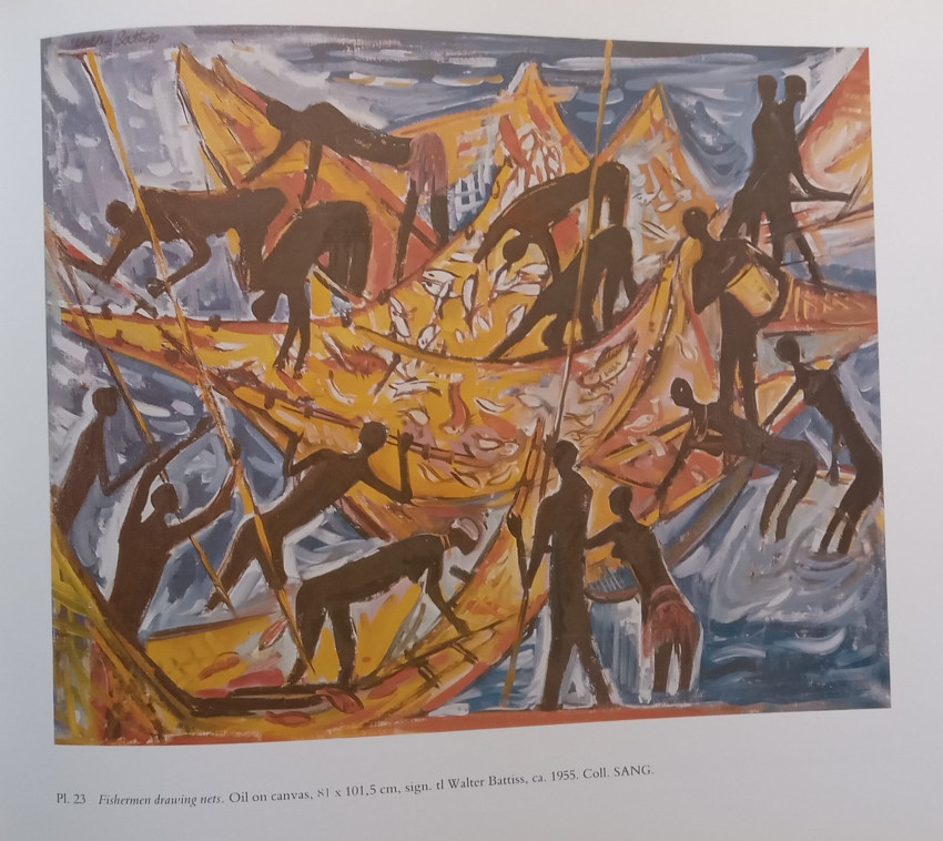 Walter Whall Battiss (1906 – 1982) was a South African artist, also known as the creator of the "Fook Island" concept. Battiss's long career as an artist was devoted to the study of man in his environment; first in the context of Africa and rock art, then, later, in the interpretation of this concept in its broadest sense. His versatility and influence as an innovator and the incentive he provided for many aspiring artists secured him a special place among leading South African artists. (wikipedia.com)