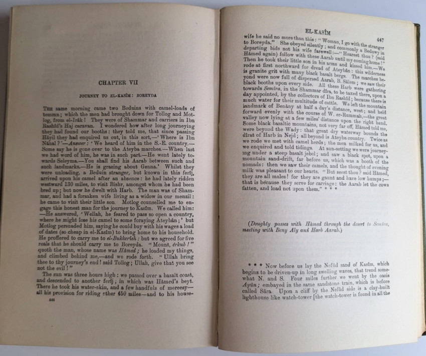 A travel book recording the author's time living with the Bedouins during the 1870s. Written by Charles Montagu Doughty, an English poet, writer, explorer, adventurer and traveller.