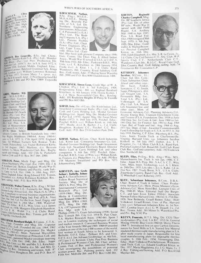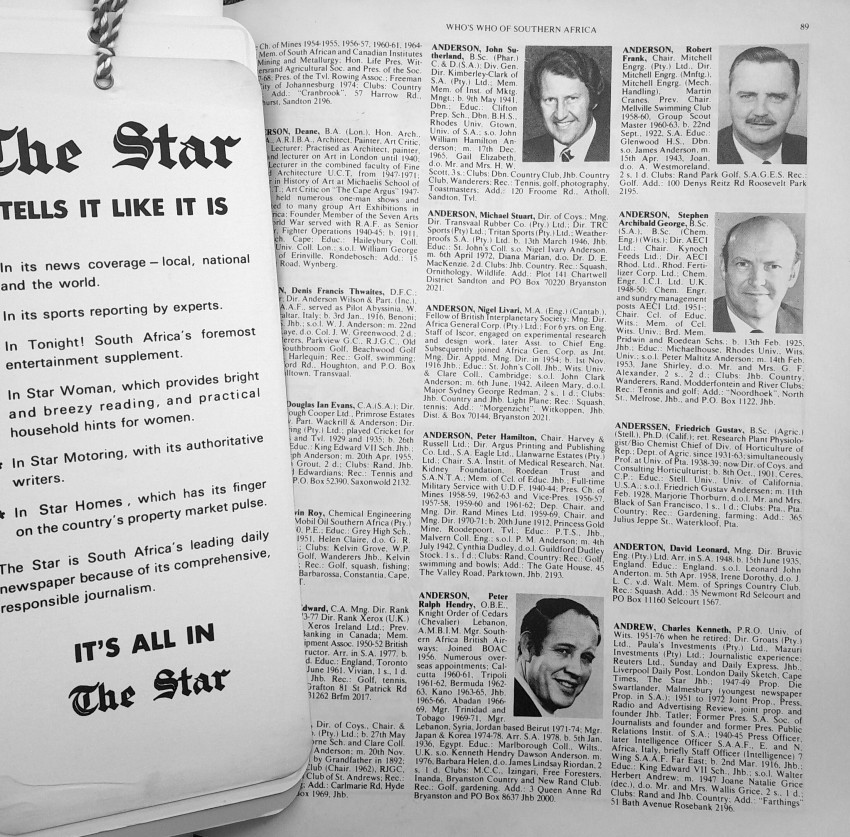 An Illustrated Biographical Record of Prominent Personalities in the Republic of South Africa, South West Africa, Zimbabwe Rhodesia, the neighboring countries and Mauritius.