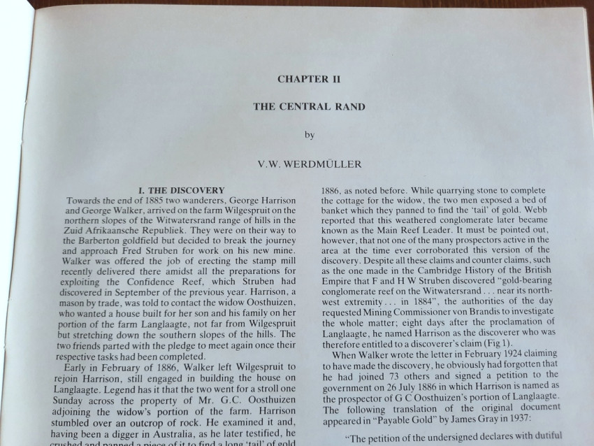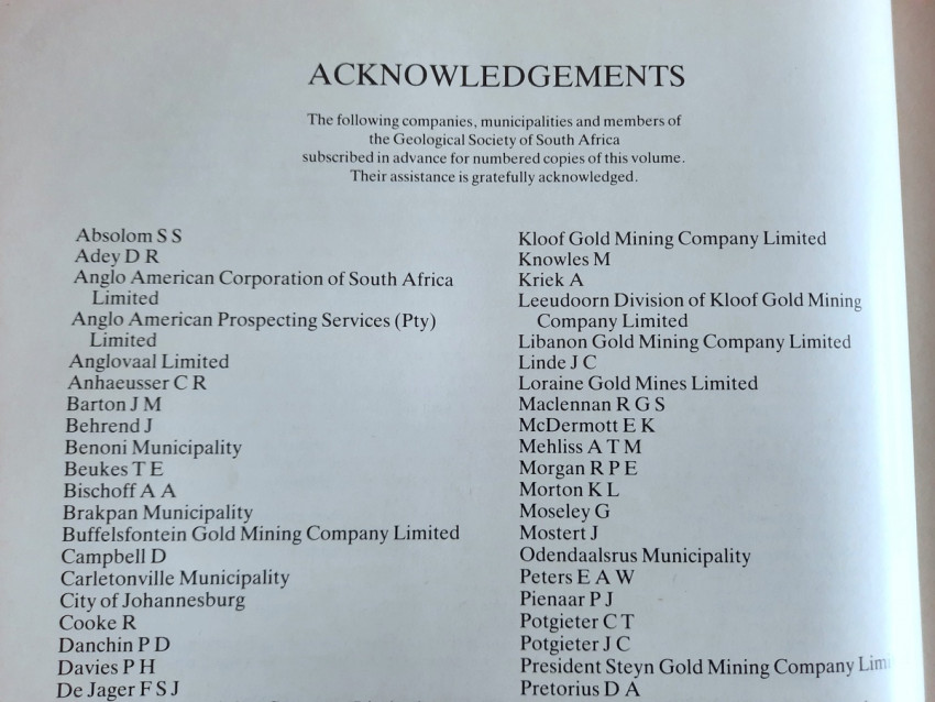 "The Council of the Geological Society of South Africa saw fit, in the early 1980s, to request Dr Antrobus to compile and edit a special publication on the Witwatersrand story, its appearance to coincide with the centenary year of the discovery of the Main Reef in 1886 on the farm Langlaagte by Harrison. Various specialists on the Witwatersrand Basin were invited to contribute chapters on each of the major goldfields and the Society is deeply appreciative of these efforts which, with the unifying thread provided by Dr Antrobus, constitute the substance of this volume.