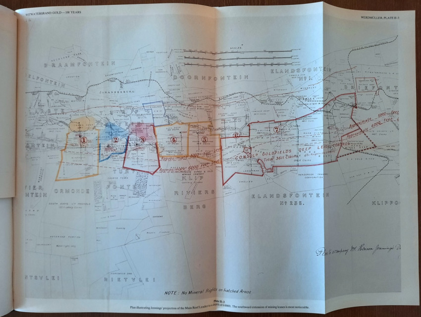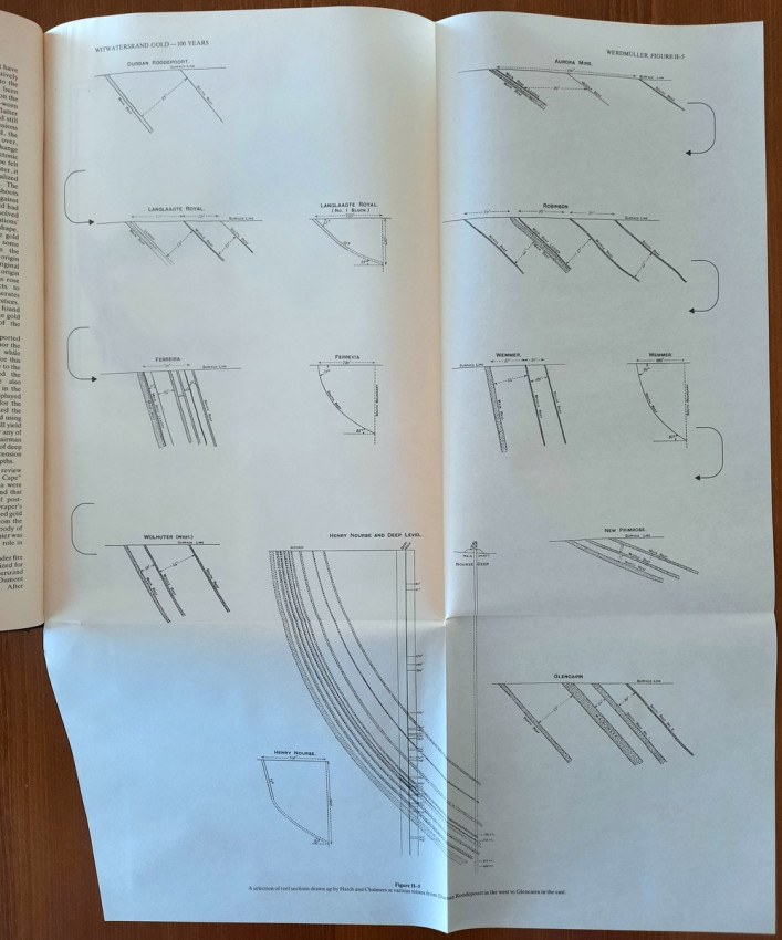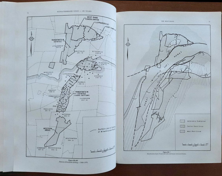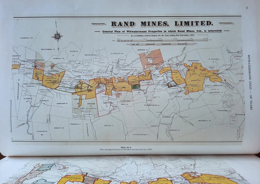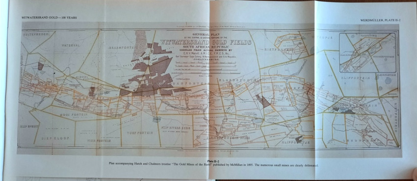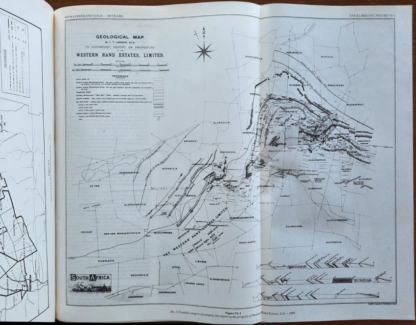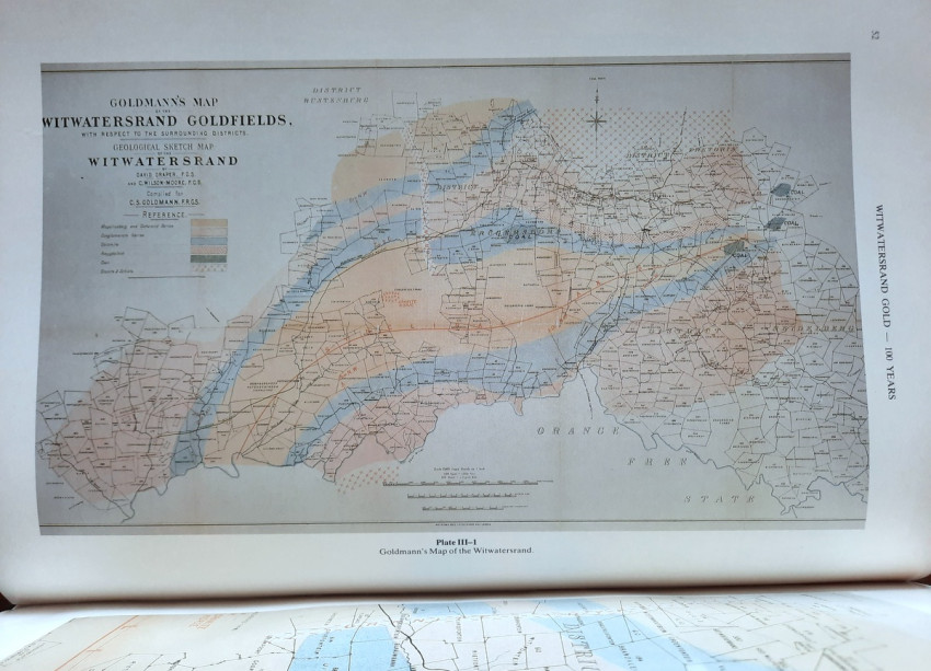 This comprehensive work consisted of seven chapters contains a detailed description of Witwatersrand goldfields, including numerous maps and planes (many folding), geological sections and profiles, photographic illustrations, tables, statistics, etc. This book is one of a limited edition of a limited printing of 1250 copies.
